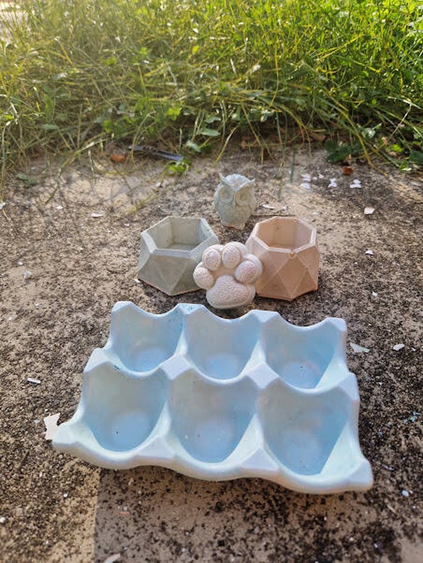 Ce support en plâtre artisanal accueille jusqu'à 6 oeufs avec style et sobriété.